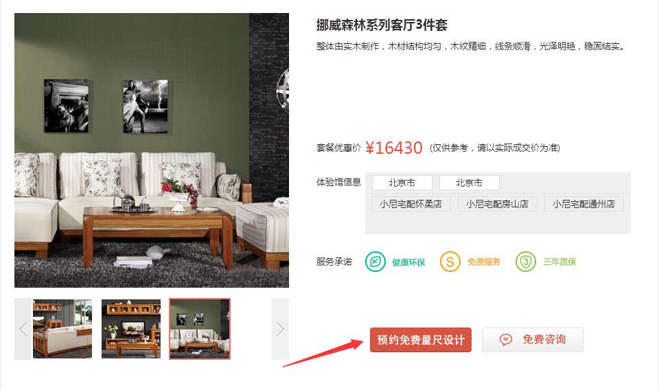 然后,打開產(chǎn)品詳情頁,點擊預(yù)約免費量尺設(shè)計。
