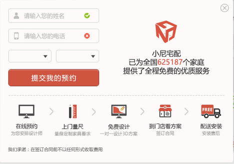填寫姓名、手機號碼、省份城市點擊立即預(yù)約量房設(shè)計。我們的設(shè)計師會在兩個工作日之內(nèi)與您聯(lián)系上門量房事宜。