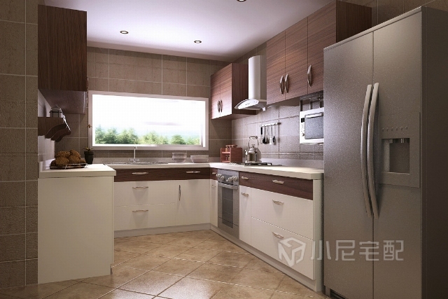 廚房用了穩(wěn)重的中國(guó)胡桃搭配白色烤漆,希望媽媽能夠喜歡。