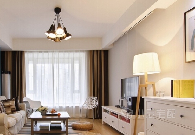 這套房子的格局略呈長(zhǎng)型,設(shè)計(jì)師良好運(yùn)用硬體條件及調(diào)整室內(nèi)格局,使生活空間達(dá)到最佳的配置,為不浪費(fèi)優(yōu)美的風(fēng)景,特意將客餐廳連結(jié)成氣,讓偌大的窗景,成為屋內(nèi)的視覺焦點(diǎn)。家裝家具一體價(jià):18萬。