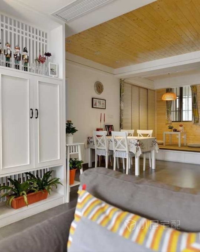 儲物的功能融入到隔斷的設(shè)計中,2者搭配相得益彰。