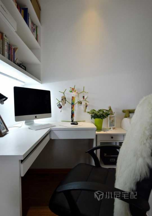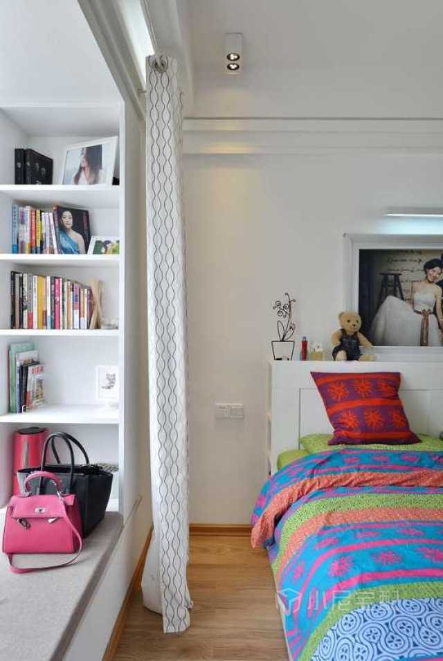 利用飄窗臺設(shè)置書柜,增加儲物的同時,也讓物品的收納更加集中美觀