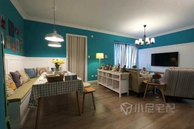 客廳是長方形的橫庭,因為沙發(fā)不能靠墻所以我們 在后面擺放了宜家簡易的收納柜,既美觀又實用。