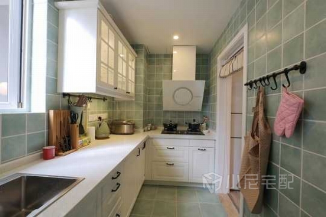 綠色的小方磚搭配白色的櫥柜,簡潔干凈。