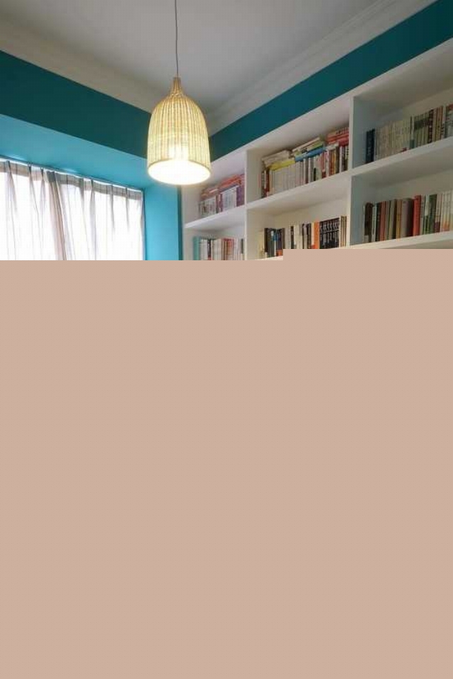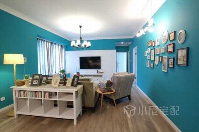淺色調(diào)的三人布藝沙發(fā)和老虎凳搭配白色茶幾。給這藍(lán)色的海洋帶來一點點的明快與干凈。