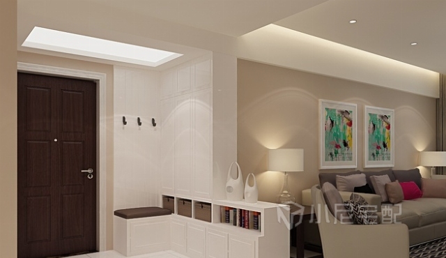 這組玄關(guān)柜的設(shè)計巧妙的把空間進行區(qū)域劃分功能齊全。