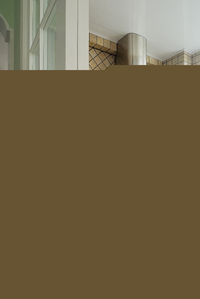 餐廳頂部斜形吊頂做了特殊處理,做舊的米白色融于整體環(huán)境中,充滿了寧?kù)o安詳?shù)泥l(xiāng)村氣息。