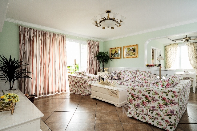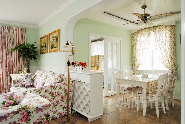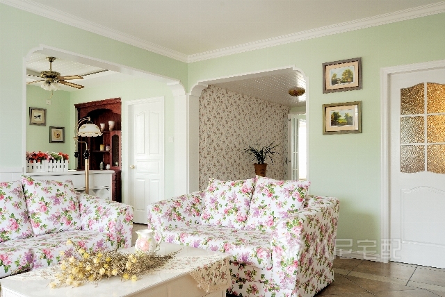 綠色墻面和碎花布紋家具,烘托出空間的品位和溫馨的氛圍。