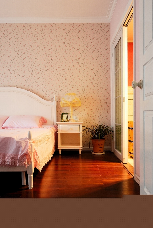 碎花壁紙加上暖色燈光,洗去主人一天的疲勞。