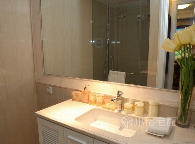 白色的浴室柜搭配沉穩(wěn)的大理石臺面,時尚優(yōu)雅。