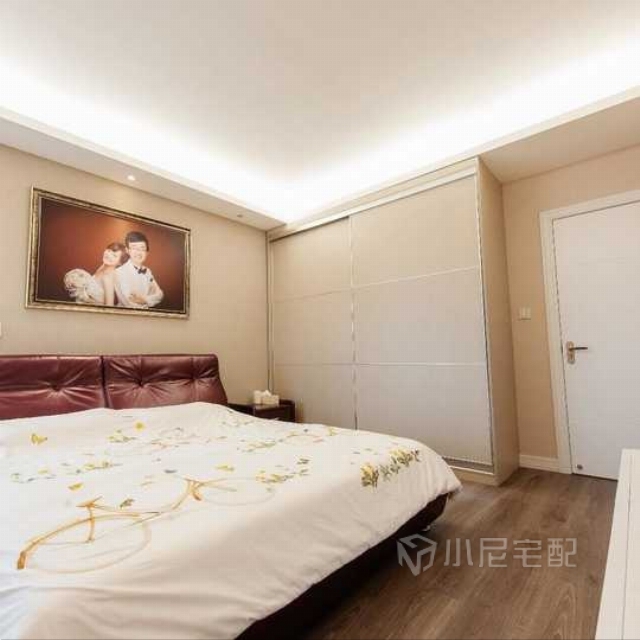 次臥的整體色調(diào)比較溫馨、自然,主要體現(xiàn)家具的定制性和實(shí)用性。