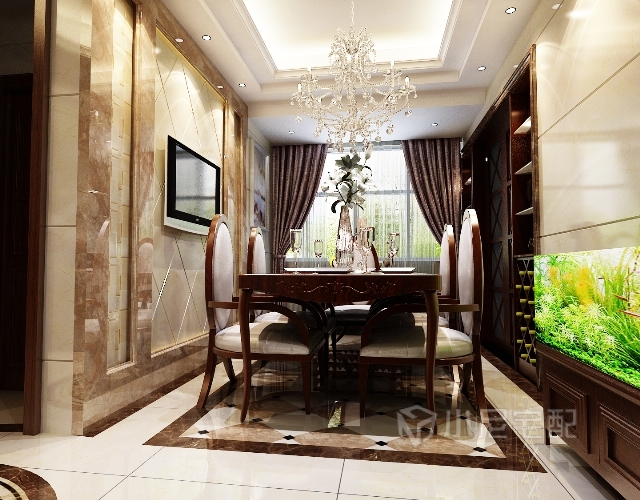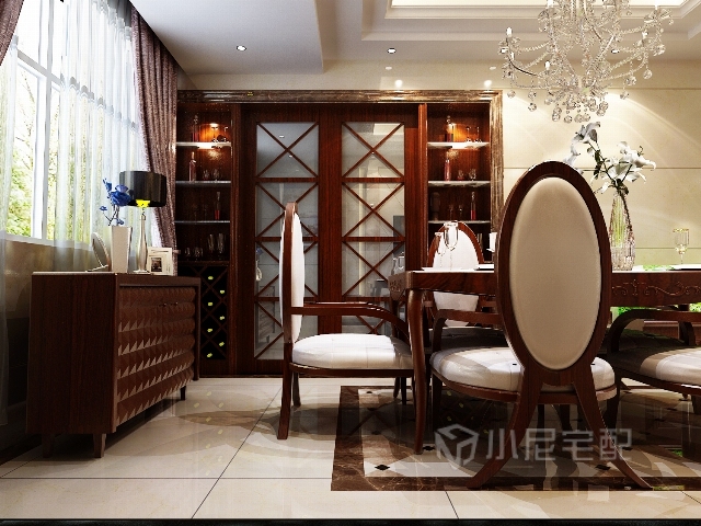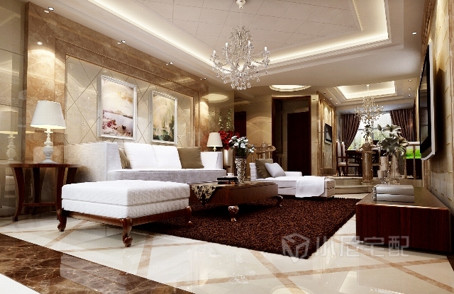 客餐廳的結(jié)合點(diǎn)做兩梯踏步,有效的突出不一樣的高貴。