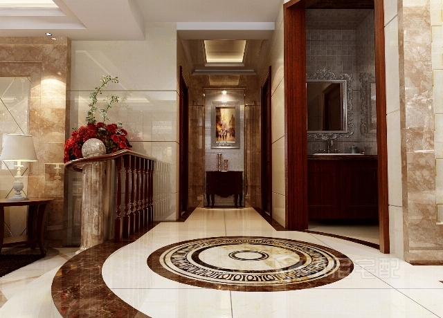 玄關(guān)的自高點(diǎn)一圓形的拼花突出中心的奢華。