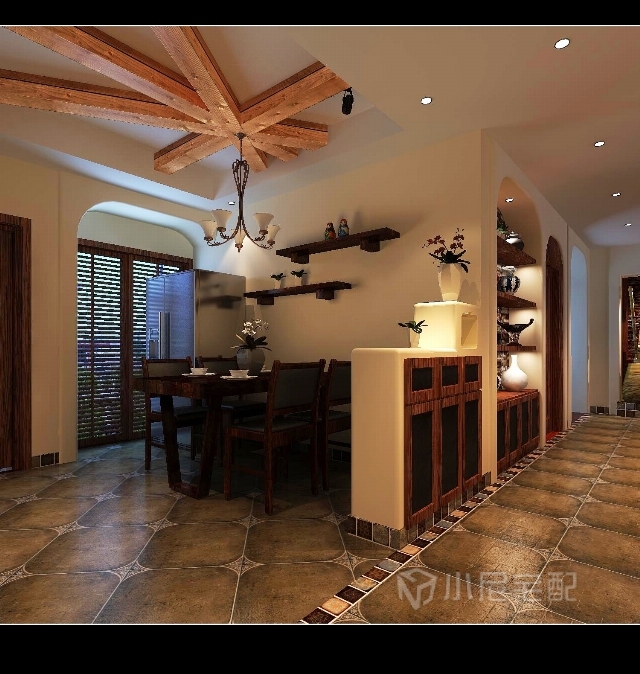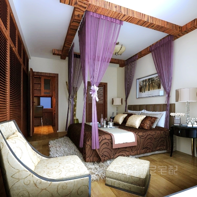 室內(nèi)多采用對(duì)稱式的布局方式,格調(diào)高雅,造型簡(jiǎn)樸優(yōu)美,色彩濃重而成熟。