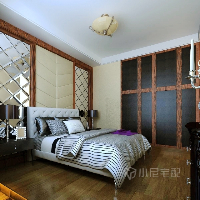 臥室背景墻簡(jiǎn)潔大氣 軟包和玻璃的更好結(jié)合。