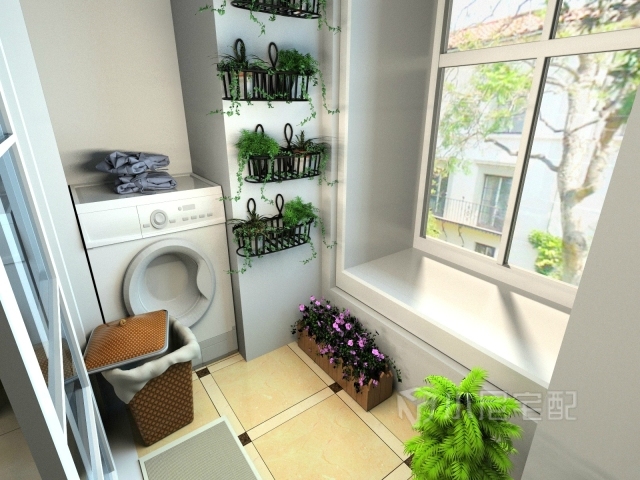 洗衣機放浴室怕受潮,放廚房又占地方,陽臺可以好好利用起來。通過定制置物架,把陽臺的部分空間做成洗衣房,洗衣、晾衣、燙衣,都可在陽臺上完成。除了洗衣外,還可以設計收納柜,種植花草等等。