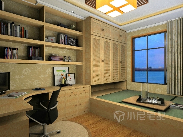 超大的書柜在滿足擺放書籍的同時(shí),還能擺放各種紀(jì)念品??梢栽陂喿x疲倦的時(shí)候,欣賞一下自己的收藏。