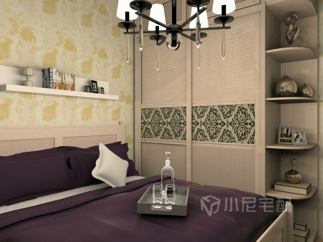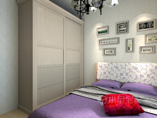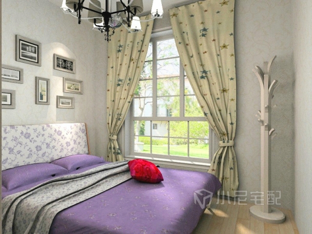 整個臥室比較溫馨,紫色床和窗簾彰顯出一種清新淡雅的氣氛,更有家的感覺。