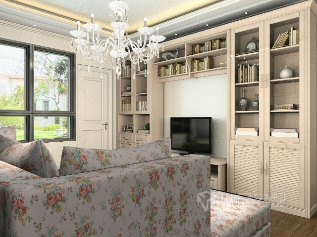 花紋的沙發(fā)和顏色柔和的組合柜相結(jié)合,讓整個空間顯得大方而又美麗時尚。
