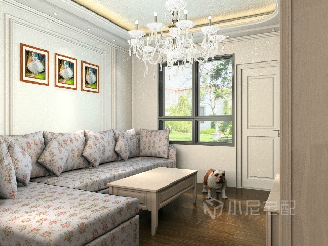 純凈優(yōu)雅的花紋沙發(fā),使人輕松自在,屋頂?shù)臒舯K是非常有特色的,和諧而又富有創(chuàng)意。