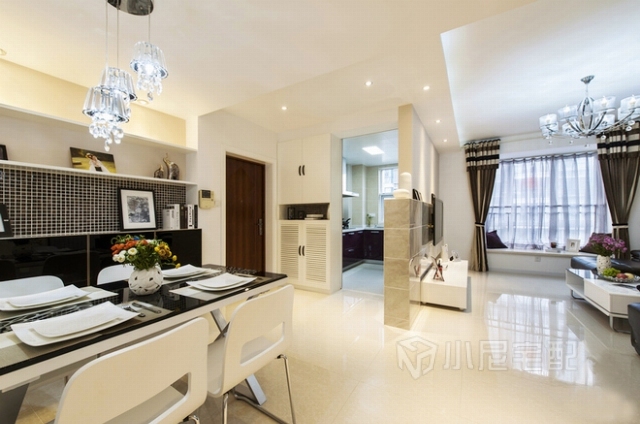 大門進來,白色到頂?shù)男駶M足日常的鞋子收納,左手廚房,右手餐廳,往前走客廳,格局分明。