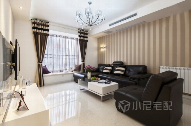 黑色真皮沙發(fā),簡單大氣。