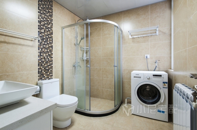 衛(wèi)生間干濕分離,合理的空間利用,把洗衣機放在衛(wèi)生間,方便也不會潮濕。