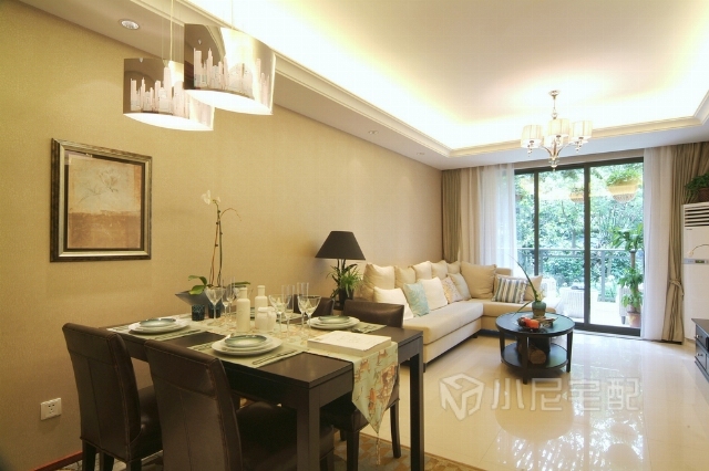 一塊地毯,便簡簡單單地劃分了客廳與餐廳。