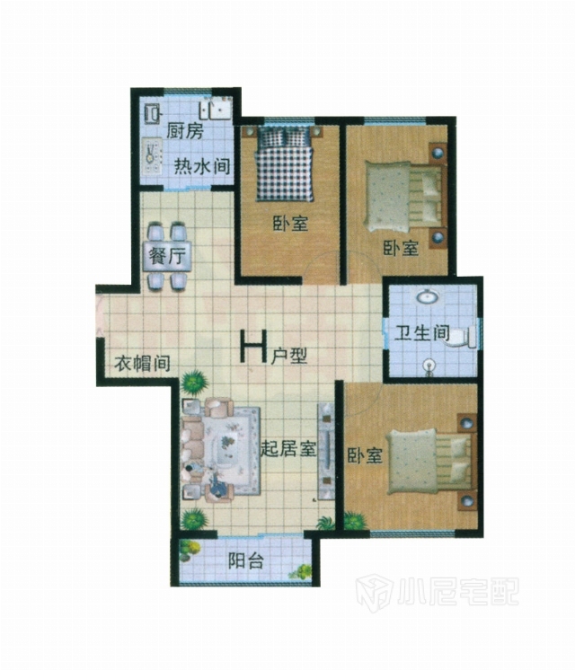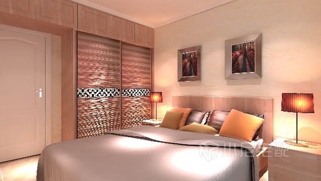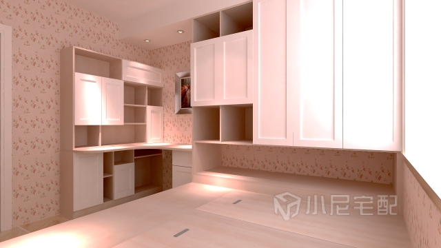 主臥室為小尼宅配的爆款衣柜“四季沐風(fēng)”系列,顏色櫻桃無光。
