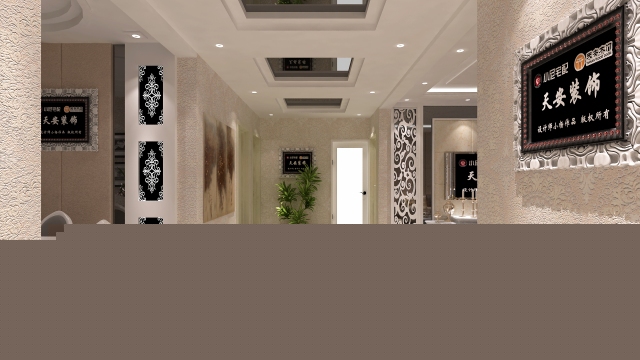 鏤空雕刻背景墻,配合大理石與灰鏡。
