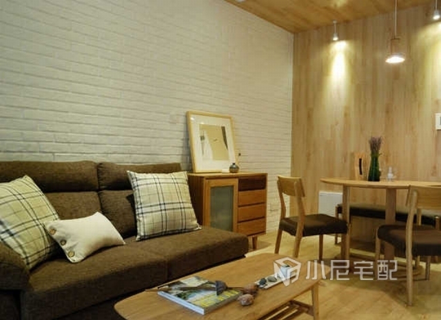 一柜多用的成品邊柜既是餐廳的裝飾柜也是客廳的儲物柜,使客餐廳有了互動性。