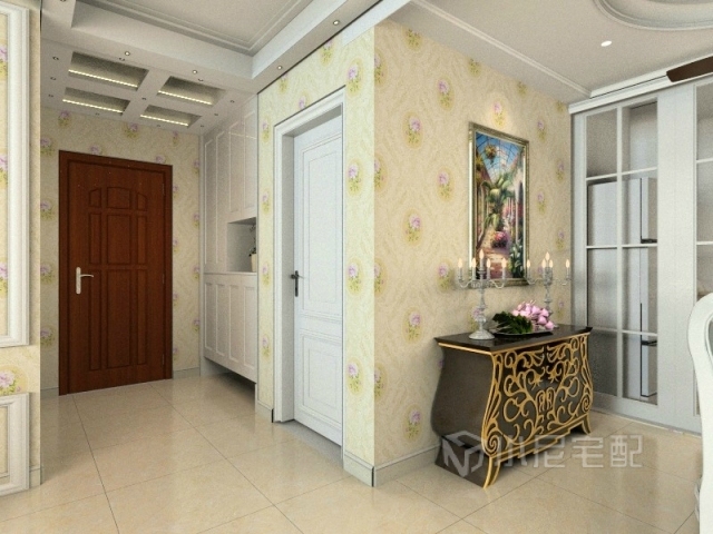 門廳吊頂用簡(jiǎn)單的田字格來(lái)做的造型,比較簡(jiǎn)單,鞋柜沒(méi)有采用 整面墻都是柜扇,中間有鏤空區(qū)域,放些鑰匙,小東西還是比較方便的。