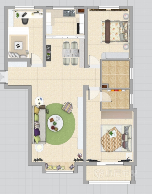 客廳采用了綠色的地毯,讓空間頓時(shí)明亮起來(lái),小小的飄窗正好把空間充分利用了起來(lái)。