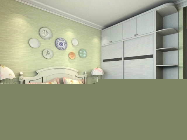 主臥用軟包做了個(gè)床頭背景,簡(jiǎn)單的吊頂,小田園式的壁紙。