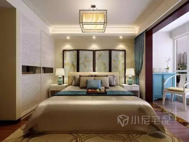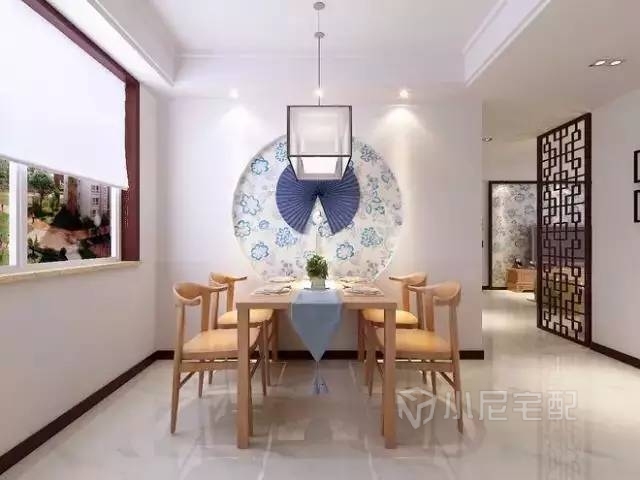 想要裝成新中式,其實(shí)并不需要過(guò)多的元素,簡(jiǎn)單的一張屏風(fēng)即可。