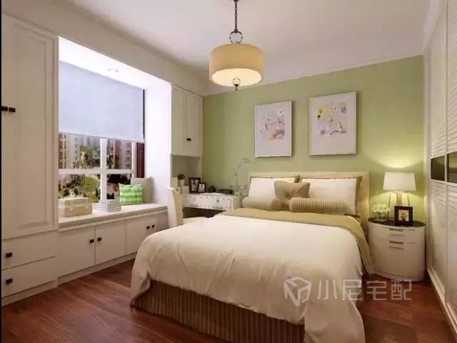 次臥干凈大氣,光線很好,在飄窗上做了一個(gè)小型榻榻米。開(kāi)設(shè)了一個(gè)休息閱讀區(qū)。