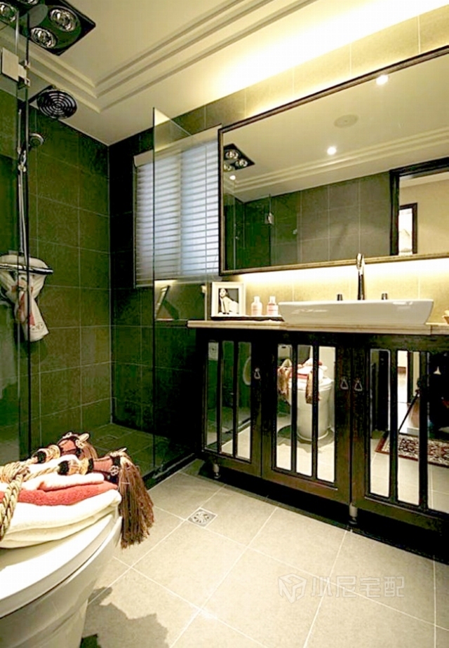 衛(wèi)生間有點(diǎn)小混搭,風(fēng)格色彩是令人滿意的。