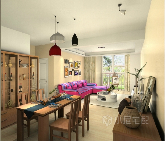 餐桌后面的酒柜既可以當(dāng)展示柜又可以放一些常用的水杯類的。