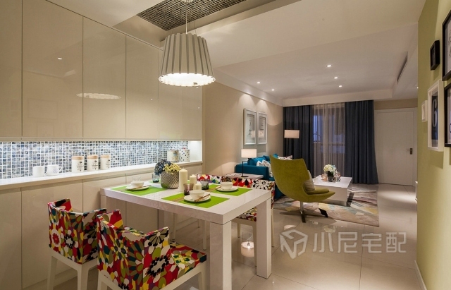 餐廳充滿了創(chuàng)意元素,不管是這色彩絢麗的椅子還是頭頂?shù)牡鯚?,設(shè)計感十足。