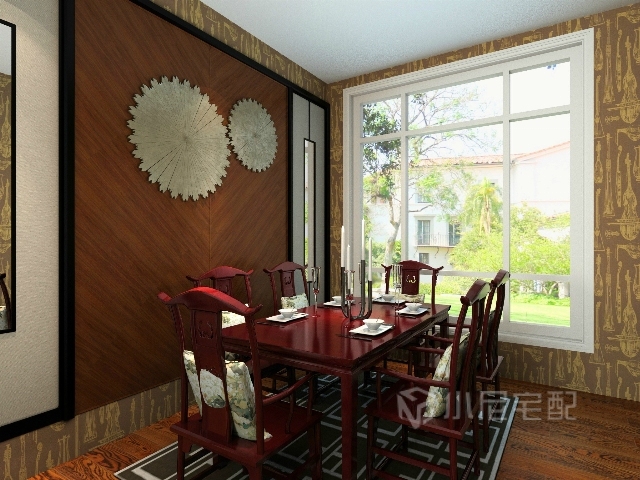 紅色的餐桌餐椅,體現(xiàn)出中國(guó)風(fēng)韻搭配餐廳背景墻,更富有中式韻味。