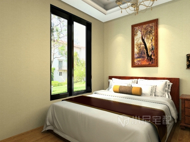 深色的床頭搭配中式的背景畫,更能體現(xiàn)出東方的韻味。