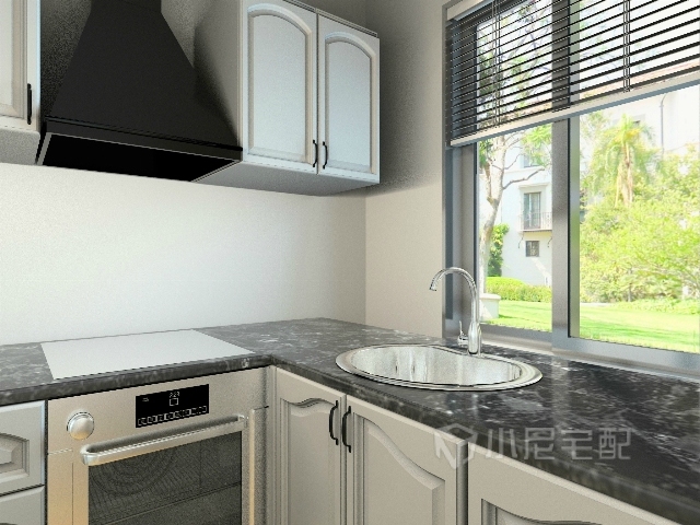 白色的櫥柜,搭配黑色的臺(tái)面更顯潔凈,時(shí)尚。