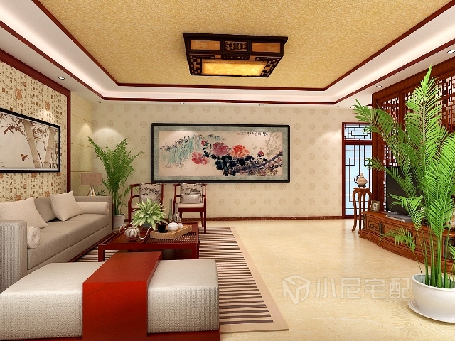 沙發(fā)墻面造型的設(shè)計展現(xiàn)出中式家居的層次之美