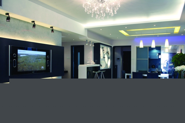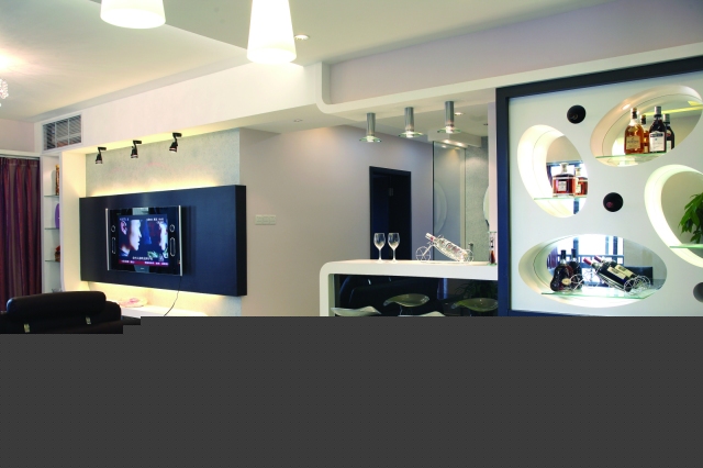 酒柜及沙發(fā)背景墻飾橢圓形蜂巢的奇特造型寓意專為新婚業(yè)主打造的甜蜜“愛巢”。而隱含在空間各部位的“L”造型元素是將男女主人姓氏拼音首位字母與他們的新居巧妙地結(jié)合在一起,全屋紫灰熏衣草色系綴以藝術(shù)玻璃、灰鏡等材質(zhì),營造出對比強烈的時尚氣息,彰顯出業(yè)主的不凡品味。家裝家具一體價:19萬。