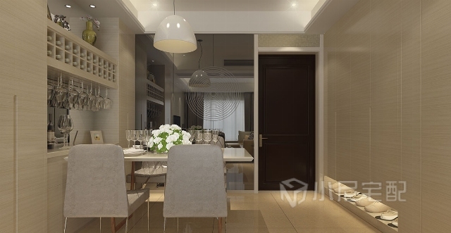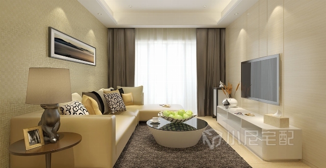 客廳-沙發(fā)、茶幾、電視柜一體色,加與壁紙,木飾面強(qiáng)烈的對(duì)比色,具有更出眾的視覺(jué)效果。