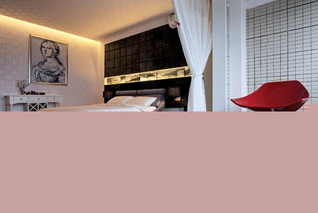溫馨的臥室燈帶里的玫瑰花、名家的素描和黑白海景圖案,仿佛一場春華夢境。