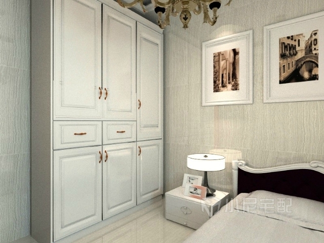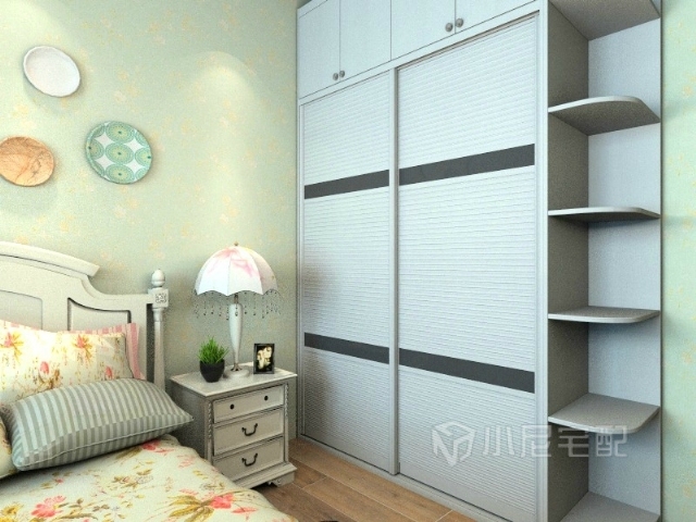 白色的推拉門衣柜,搭配白色的平開門頂柜,使臥室顯得潔凈,自然。