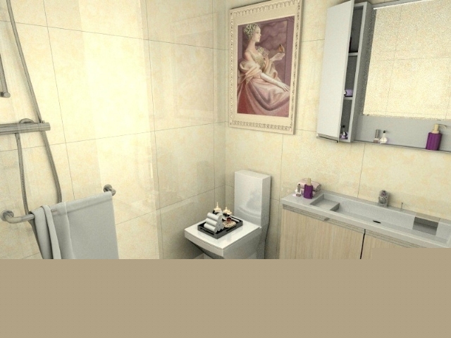 淡黃色的墻磚的搭配黃色的洗手池,溫馨、自然。