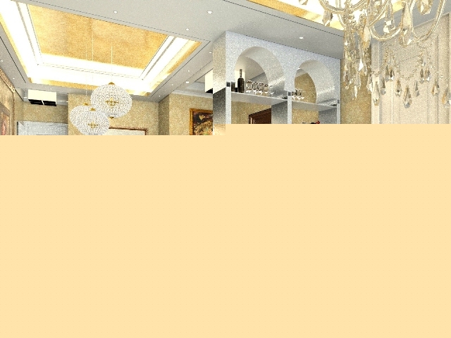 豪華大型吊燈略低的高度,營造出較為突出的裝飾效果。