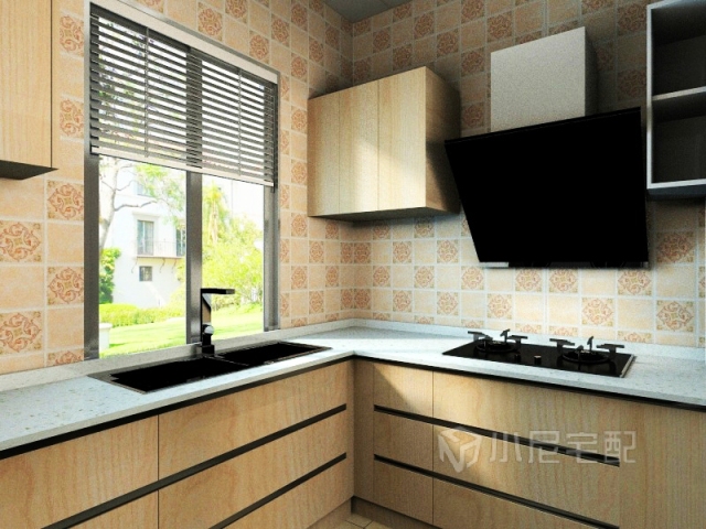 廚房的色調(diào)是暖色為主,整潔大方